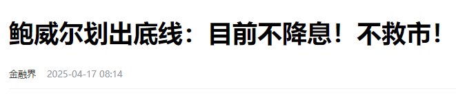 ——2025年4月2日,特朗普正式对世界发动贸易战,美国股市、债市、汇市剧烈震荡,就在急需美联储稳定金融市场的时候,4月16日鲍威尔公开发表“不会救市”的声明,同时宣布“不急于降息”的言论。