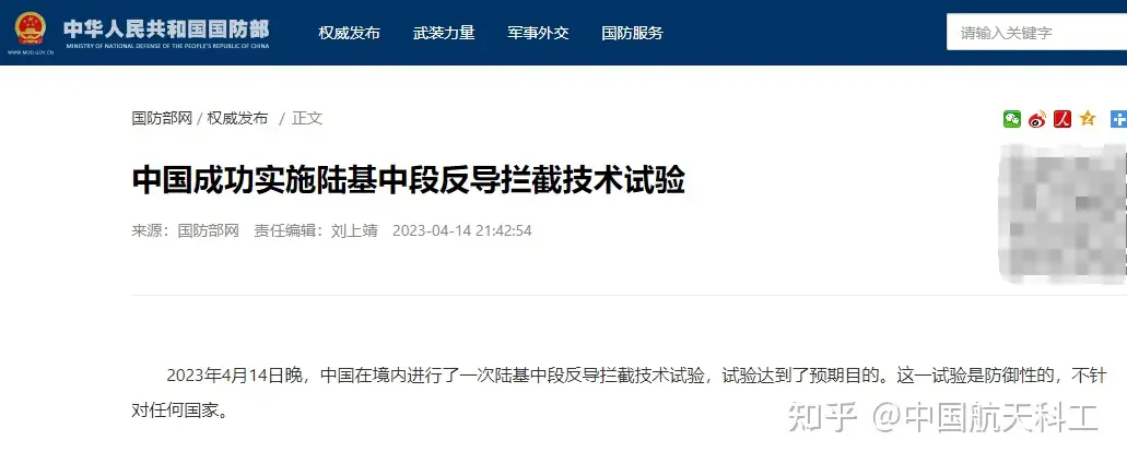 截至目前,我国已7次对外公开宣布进行陆基反导技术试验,包括题主所在的2014年也有进行过。这7次分别发生在2010年1月11日、2013年1月27日、2014年7月23日、2018年2月5日、2021年2月4日、2022年6月19日、2023年4月14日。