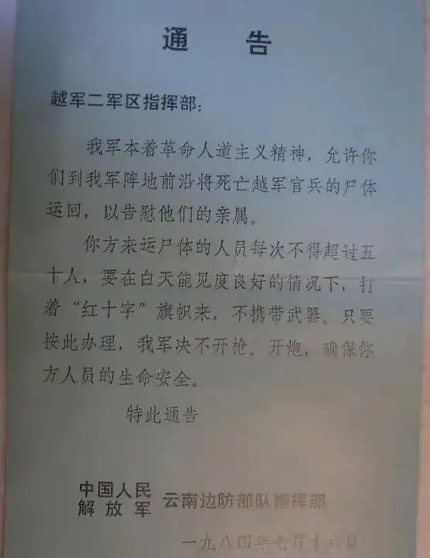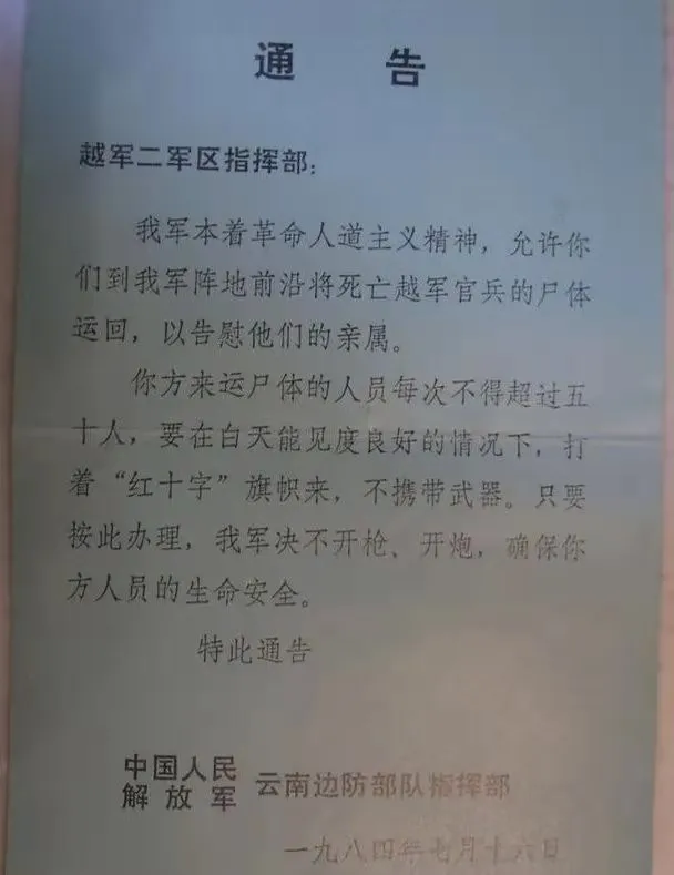 由于越军留下的尸体过多,而且过于密集,解放军甚至还专门通知越军前来收尸,并承诺不予攻击。