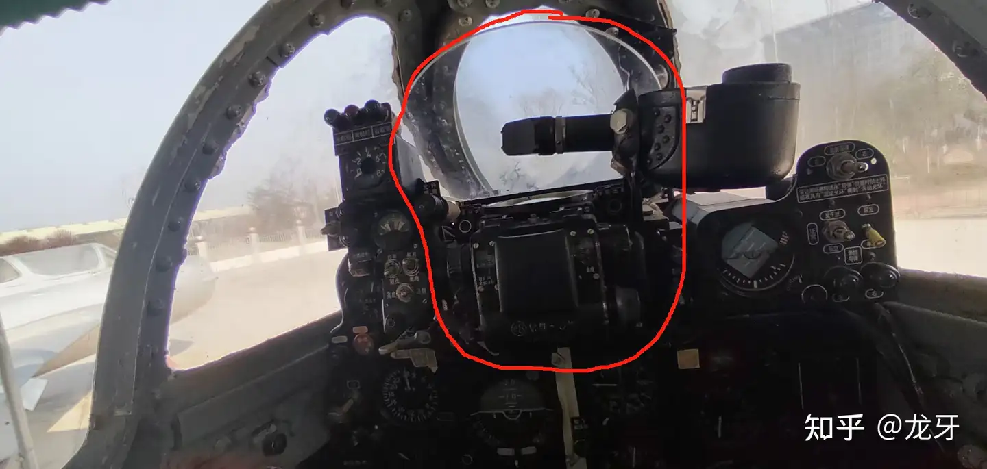 这是因为苏式歼击机瞄准具是通过把一个光环投射到一块玻璃上,就是这一大坨: