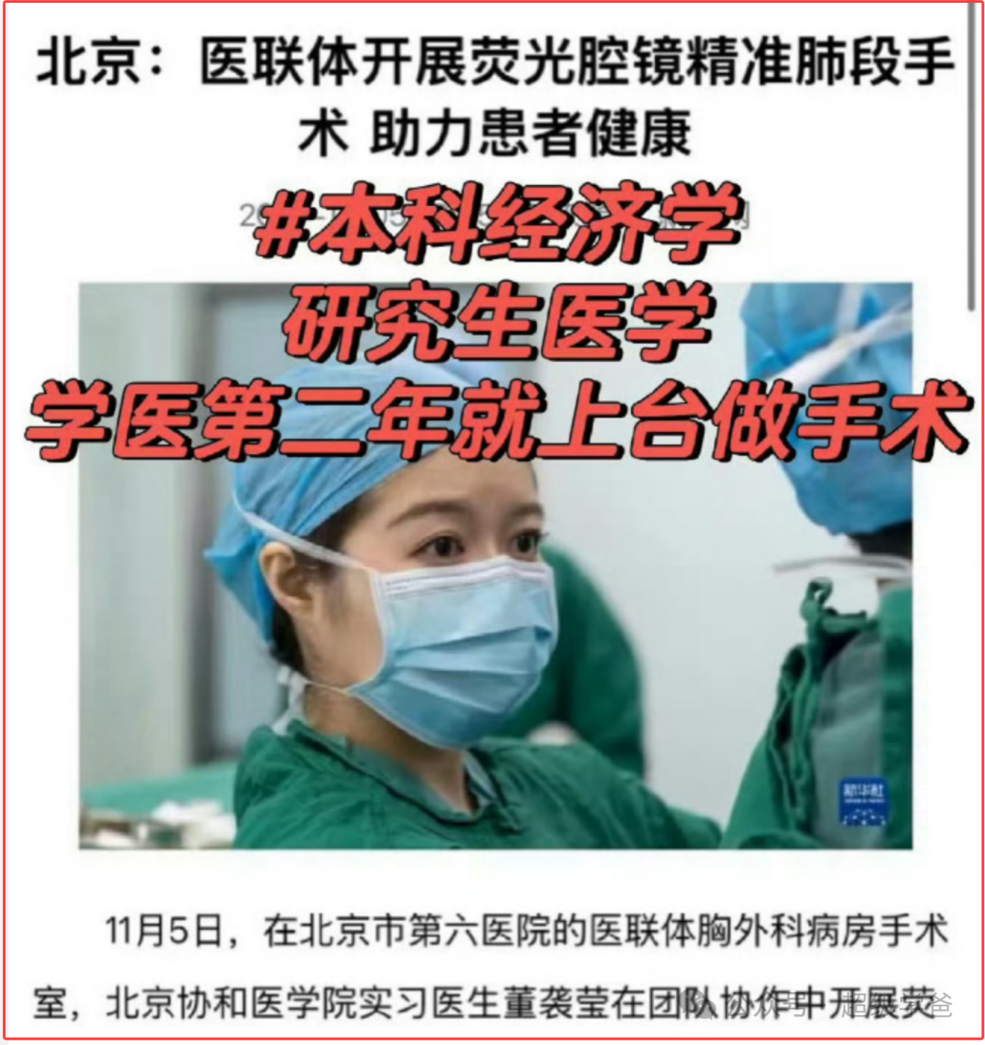 因为她是协和“4+4”学制的第一期学生。也就是说,协和从她野鸡大学毕业的当年,开始改变规则。那我们就有理由怀疑,这就是私人订制的萝卜改革。