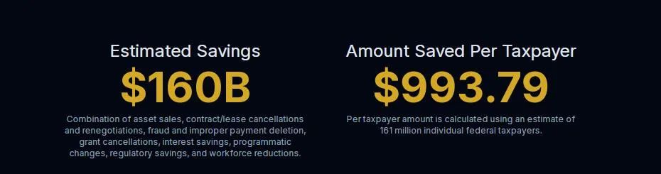 DOGE成立至今“节省”的资金, DOGE网站截图