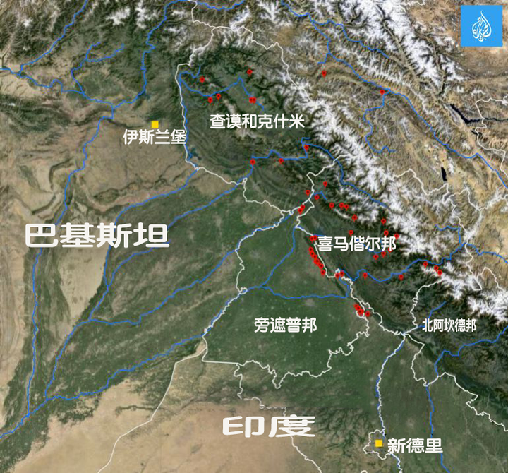 从上面一张图,可以看出,谁控制了印度河上游,谁就可以控制巴基斯坦的水源(通过修水坝),也就控制了巴基斯坦的粮食产量。而这个上游就是克什米尔。