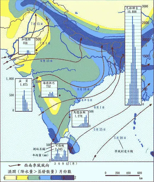 可以看到,巴基斯坦农业区与印度河流域是高度吻合的。原因是南亚季风吹不到巴基斯坦,如果没有印度河的水,那么巴基斯坦就会如同一纬度的撒哈拉沙漠一样一片黄沙。
