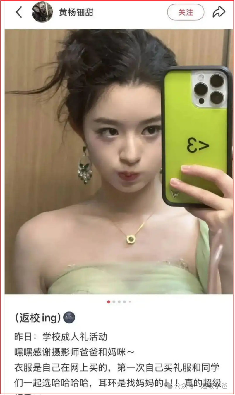 5月11日,童星出身的黄杨钿(tián)甜,在网上分享了自己的成人礼照片。照片中,黄杨钿甜佩戴的一款耳环,被小红薯上的网友指认是奢侈品牌GRAFF经典系列,公价约230万元。