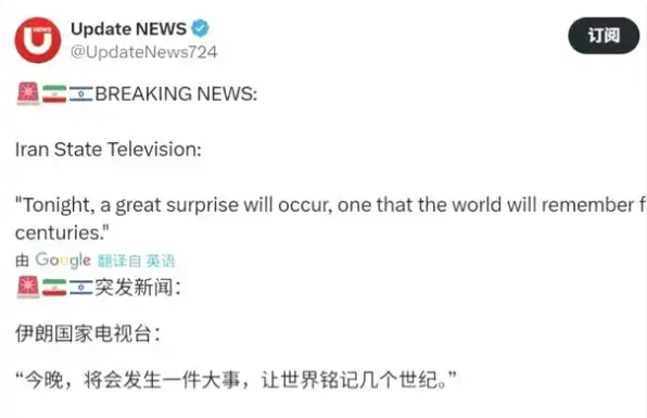 因为伊朗国家电视台的一张宣告截图昨天被多家媒体传疯了,说晚上会发生一件能让全世界铭记几个世纪的大事。
