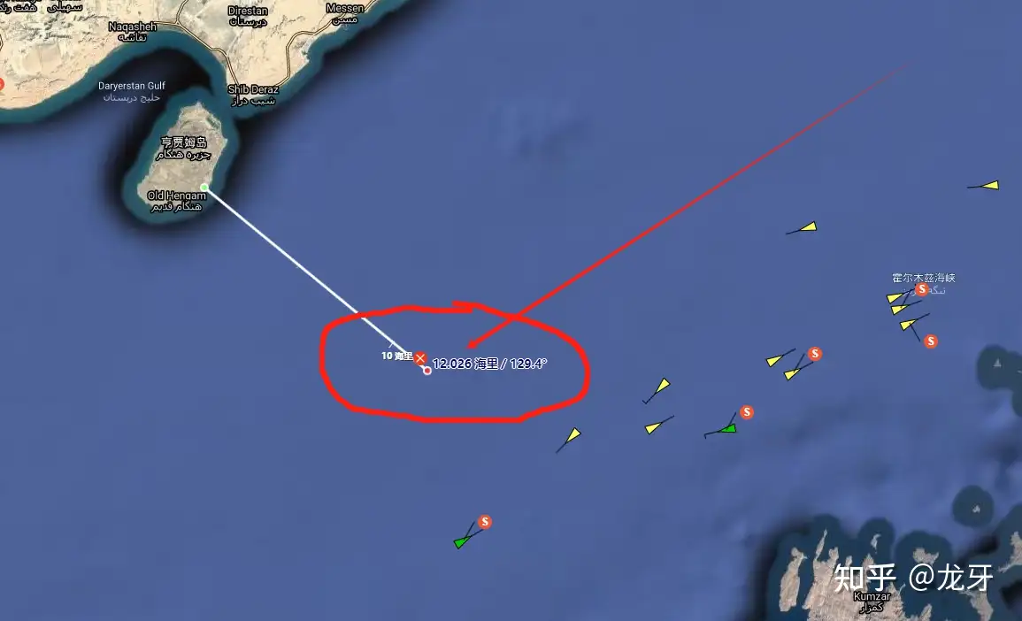 根据“船讯网”显示信息,霍尔木兹海峡中,基于伊朗领海基线外推12海里范围内已经没有任何第二国船只。