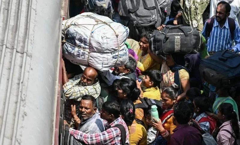 今年5月,在印控的克什米尔第二大城市查谟,人们争先恐后要挤上火车离开,以躲避战火。
