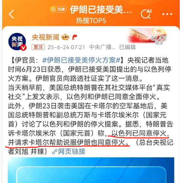 到了24日上午的时候,事情终于搞清楚了,伊朗确实签协议了,央视确定了消息属实。