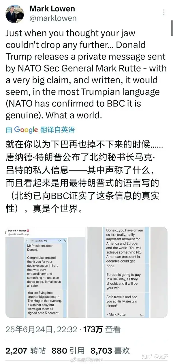 诡异的是北约秘书长居然也就真的配合,这事儿多半就这么成了,但是看得出来川大统领其实是心里很窝火的,所以把这条舔沟子的私信给放了出来。