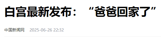 6月25日,白宫网站专门发了一段特朗普参加北约峰会的视频,用了配乐和字幕是专门找的:爸爸回家了!