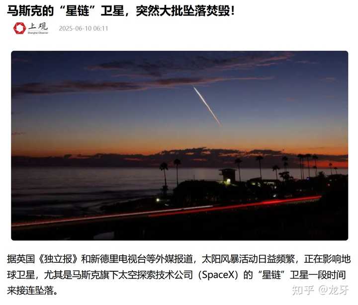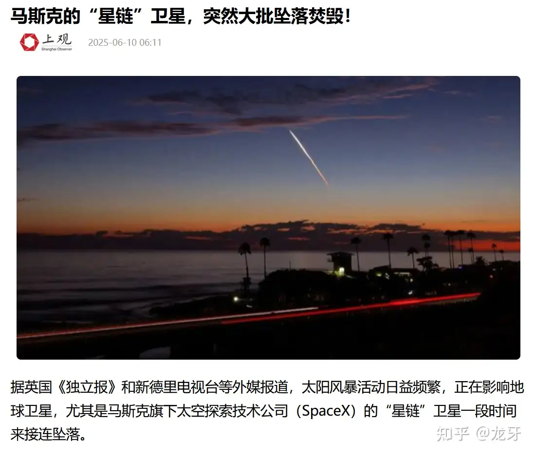 2024年一年就掉下来300多颗,这些低轨卫星同样具有很高的速度,至少对地速度在第一宇宙速度以上,在大气层里面一样会有等离子鞘,一样会有尾迹云。