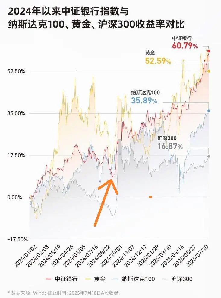 银行已经拉得冒火星子了,超过纳指和黄金,这么涨是要干什么?