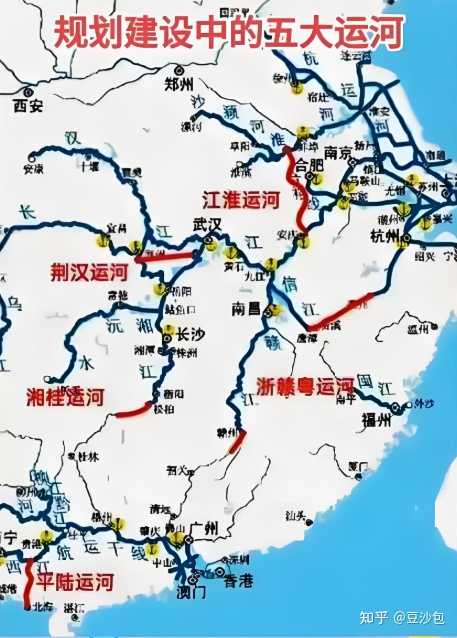 中国有世界前三运河,并在建设可能是世界前十的平陆运河,同时还在完善大大小小的支线建设,形成史无前例的运河网,横贯长江珠江水系。