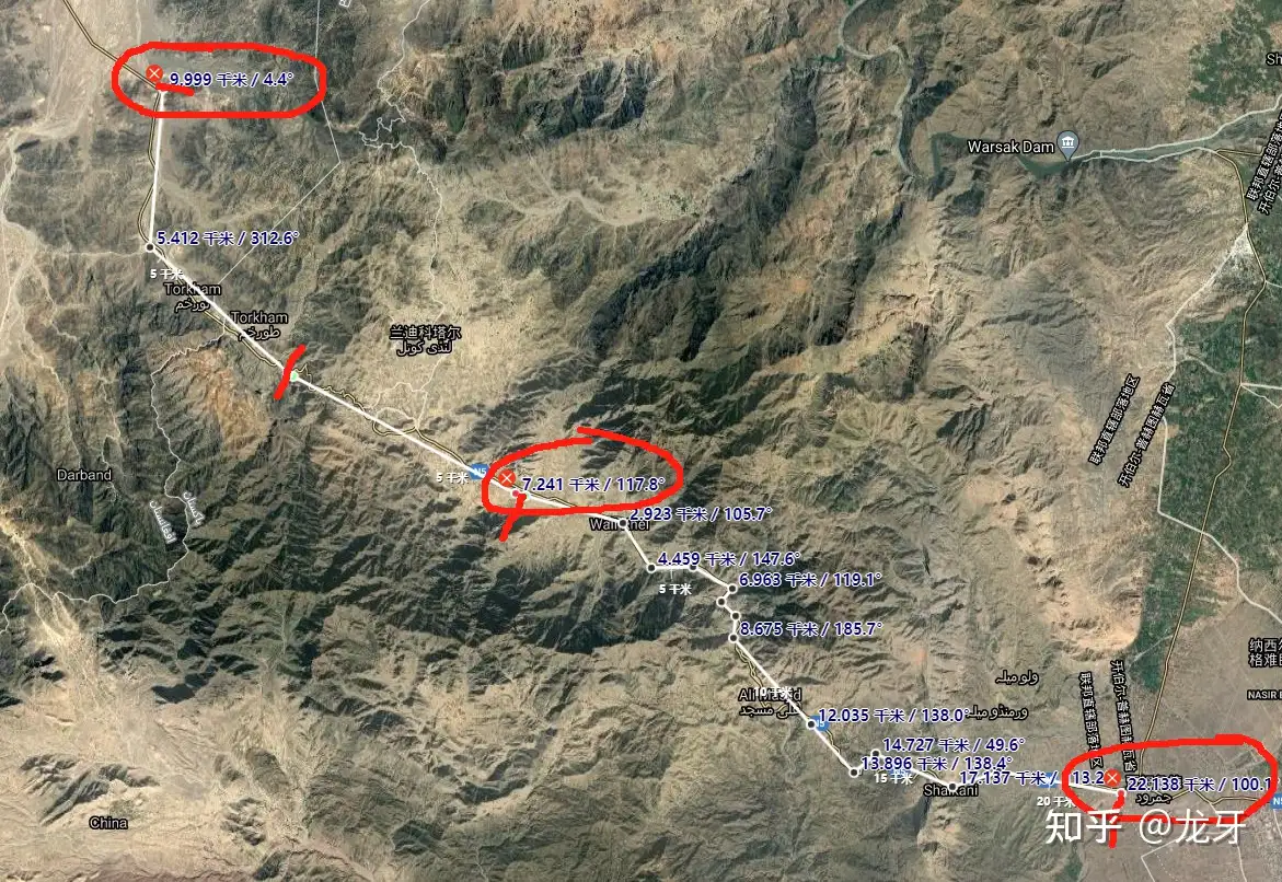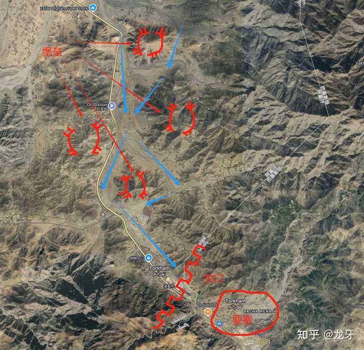 第二段为防御纵深,自Torkham起,到Wali Khel为止,外关就是刚才提到的那个关口,再在纵深建立一个内关,作为第二道防线。内关内侧再建立三个兵营,起到屯兵、囤积粮草和轮换修整的营地。最后在第三个兵营的后侧建立下关,依托地形作为最后的防守阵地,也一定程度上可以避免敌军袭扰我后勤补给通道。