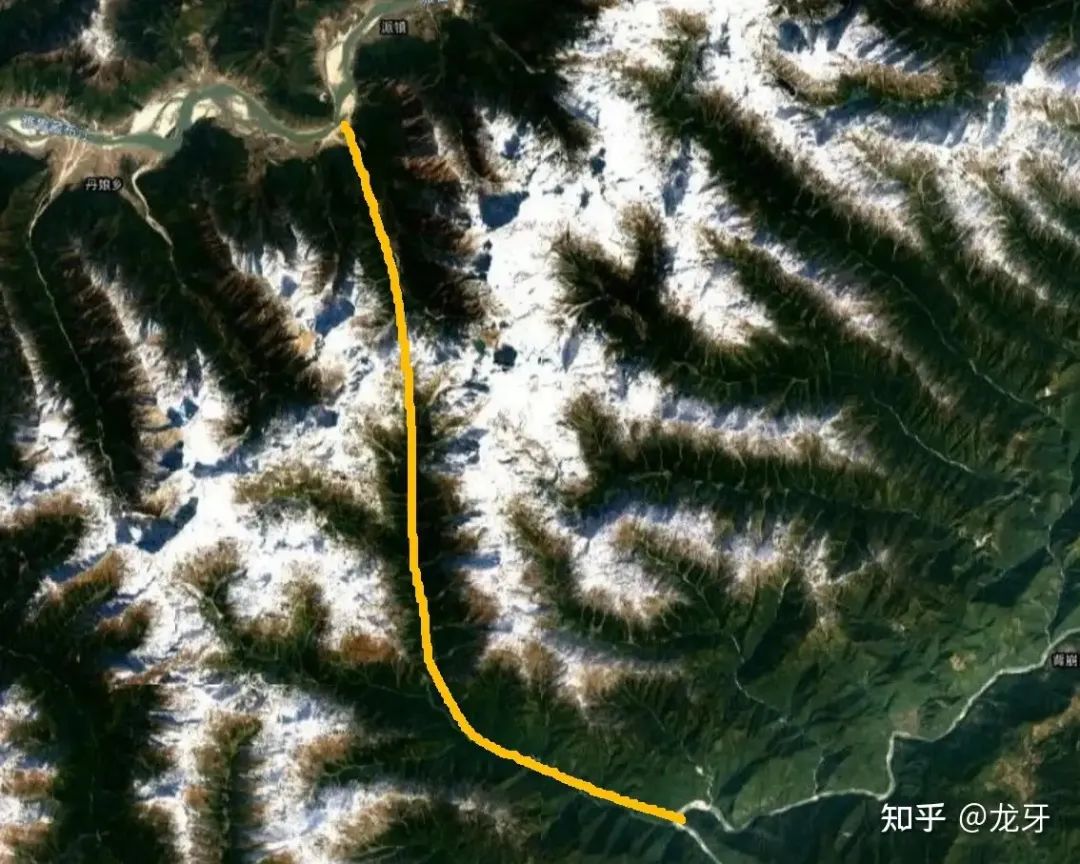 我发现有个奇怪的东西,一直从林芝派镇,直杠杠的穿过喜马拉雅山、多雄拉山口,直达墨脱县城下游的背崩乡附近地区。