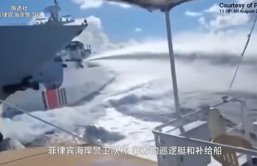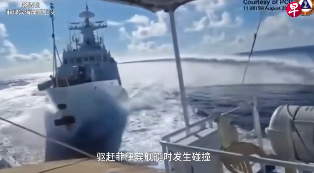 我们和菲律宾在黄岩岛驱逐菲海警舰艇)苏鲁安号(BRP Suluan)时,自己一艘海警船高速追击过程中与我海军军舰相撞导致受损。