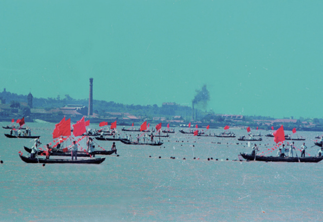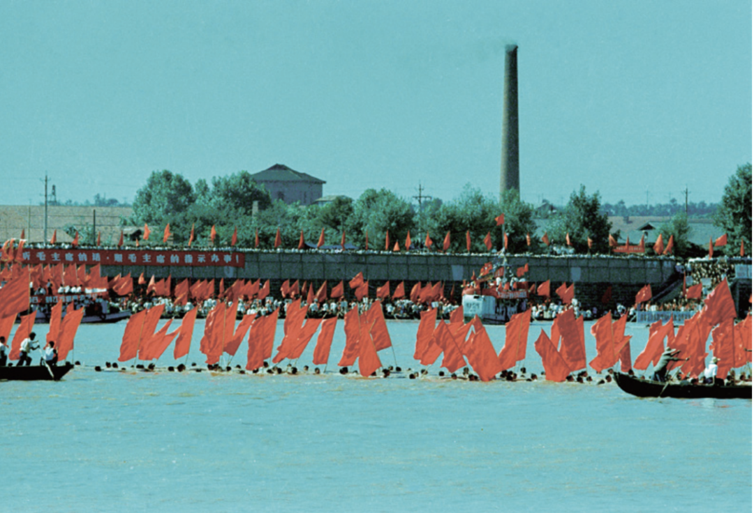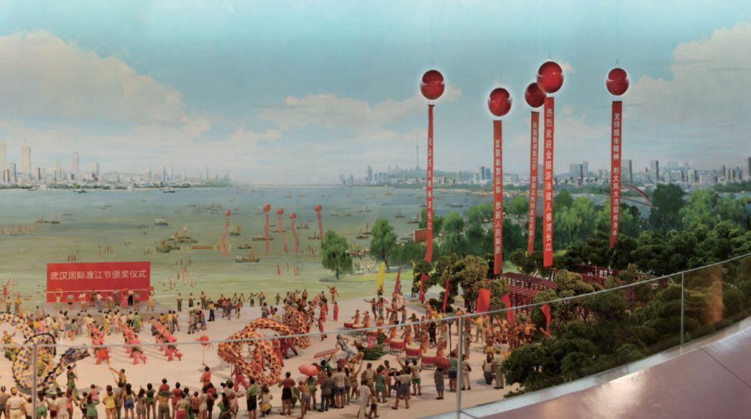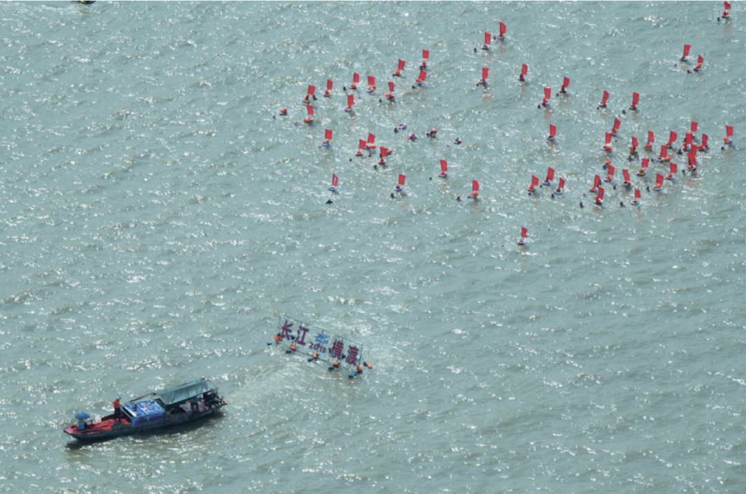大江弄潮 在毛泽东畅游长江壮举的鼓舞与推动下,武汉乃至全国兴起了到江河湖海游泳的热潮。从 1956 年至今,武汉成功举办了数十届横渡长江活动,并逐步发展为独具特色的国际渡江活动——中国武汉国际横渡长江节,成为地方传统与时代精神结合的文体盛会和展示武汉、扩大交流的宽广舞台。
