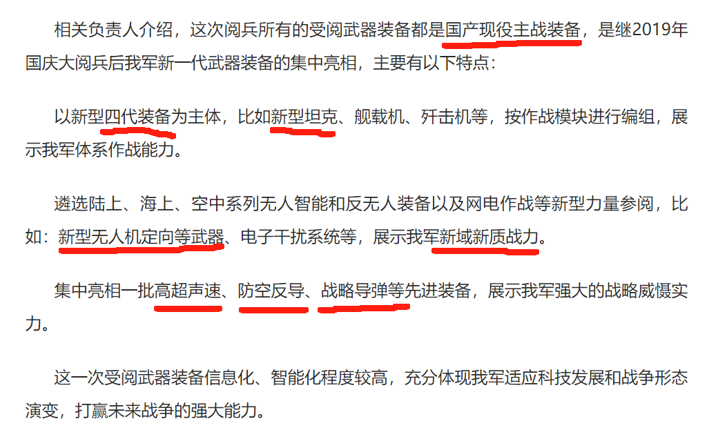 着重强调是“现役装备”,充分说明此次阅兵使用的武器装备全部已经列装部队,而不是试验性、预研性装备。什么叫“现役”?很多人对此是没有清楚概念的,一件武器成为“装备”,意味着“三有”:
