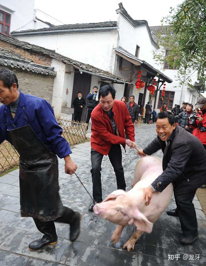 农民嘛,一年到头见到钱的机会不多,零零碎碎卖一点鸡蛋、蔬菜什么的没有几个钱,也就卖大肥猪的时候才能见到一沓一沓的百元大钞。那个年头也不兴出去打工,一家老小要用钱,都指望着二师兄。收猪的时候是农村里难得见到的家家户户喜气洋洋的时刻,而杀猪过年更是农村里一大盛况,烫猪毛大锅里的滚滚蒸汽飘在农家小院上空,膘肥体壮的二师兄此时倒挂在架子上,到处是刚刚卖了猪兜里有了票子的乡亲们,到处是等着大口吃肉的小孩子,连大黄都能混到几口下水吃,吐着舌头一脸的幸福。