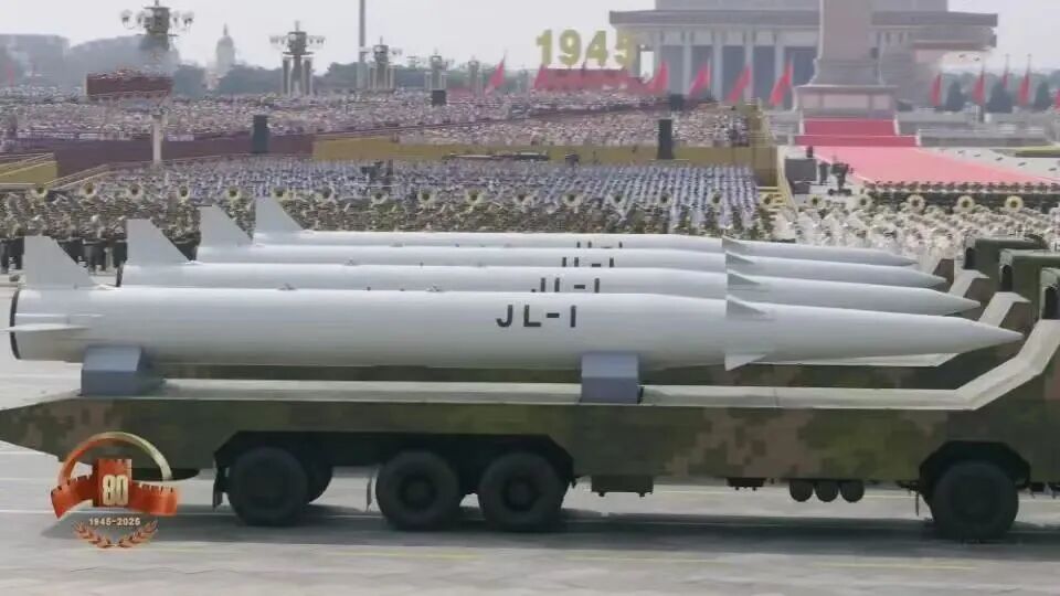 这种堪称冷战年代的恐龙级老古董都又一次拖出来了,怎么敢说是全新的洲际核导弹呢?对这个问题先别急,后面会有绝对让大家都满意的答案;谁敢说液体弹就不是全新的?排头兵的第一种,就是惊雷1,虽然过去曾经被拍到过非常模糊的图片,但是当时一般被认为是一种超远射程的空射弹道反舰导弹;而现在被公开证实为是全球罕见的空射核导弹。虽然其是被拖车拉着展示,但实际作战时会被挂载在6N等战略轰炸机上进行跨洲际打击。仔细看其弹体尾部的稳定大弹翼,会发现居然是罕见的“三缺一”。也就是十字稳定尾翼只有3片而不是正常的4片,这恰恰是为了方便挂载在6N的机腹位置。考虑到6N本身具备机头加油装置;经过2次空中加油,至少具备8000公里的自由落体打击半径,