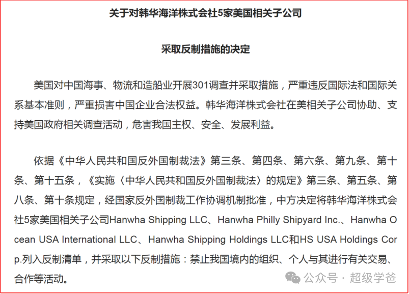 今天是10月14日,又有几则大消息:第一,中国先于美国开始征收特别港务费。第二,商务部宣布制裁韩国韩华海洋株式会社等5家美国相关子公司。