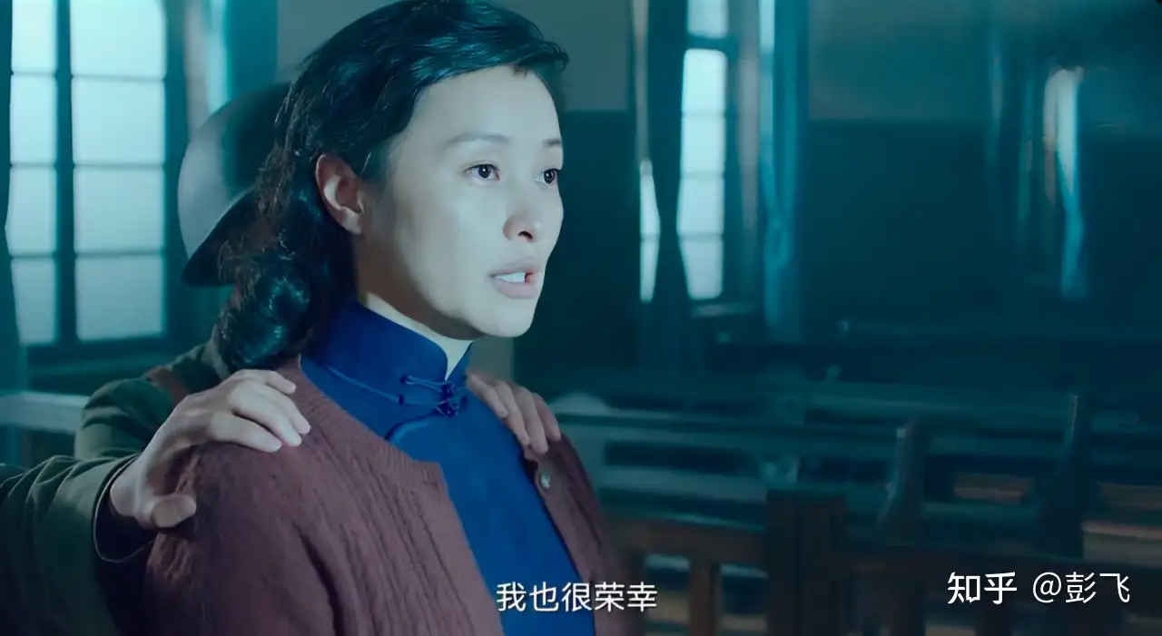 但吴越老师,演出了那种大义凛然里暗含一丝丝悲怆的微妙差异感,我仔细反复观看了这场戏,吴越的眼中是有热泪的,但她克制住没有使泪水溢出来,而后又闭上了眼睛,完美的诠释了人物内心的悲鸣交杂…