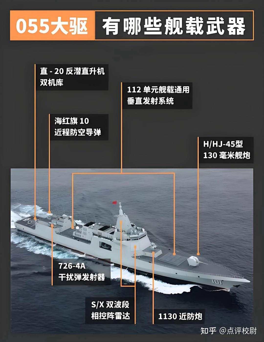 其中万吨大驱055,装备112单元垂直发射系统,搭载的鹰击-21反舰导弹最大射程1500公里,末段突防速度达10马赫,可轻松穿透日本“宙斯盾”舰的“标准-3”反导系统。