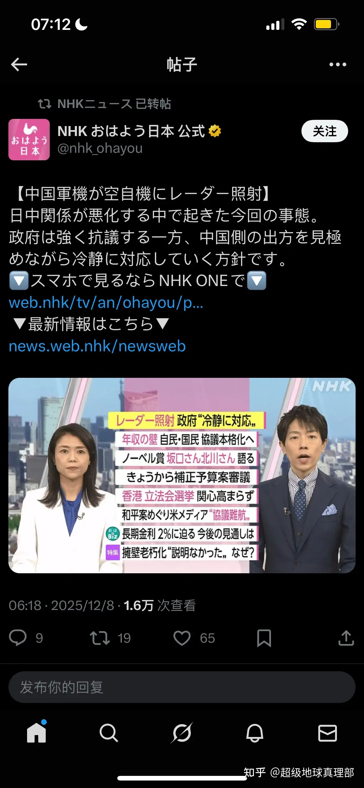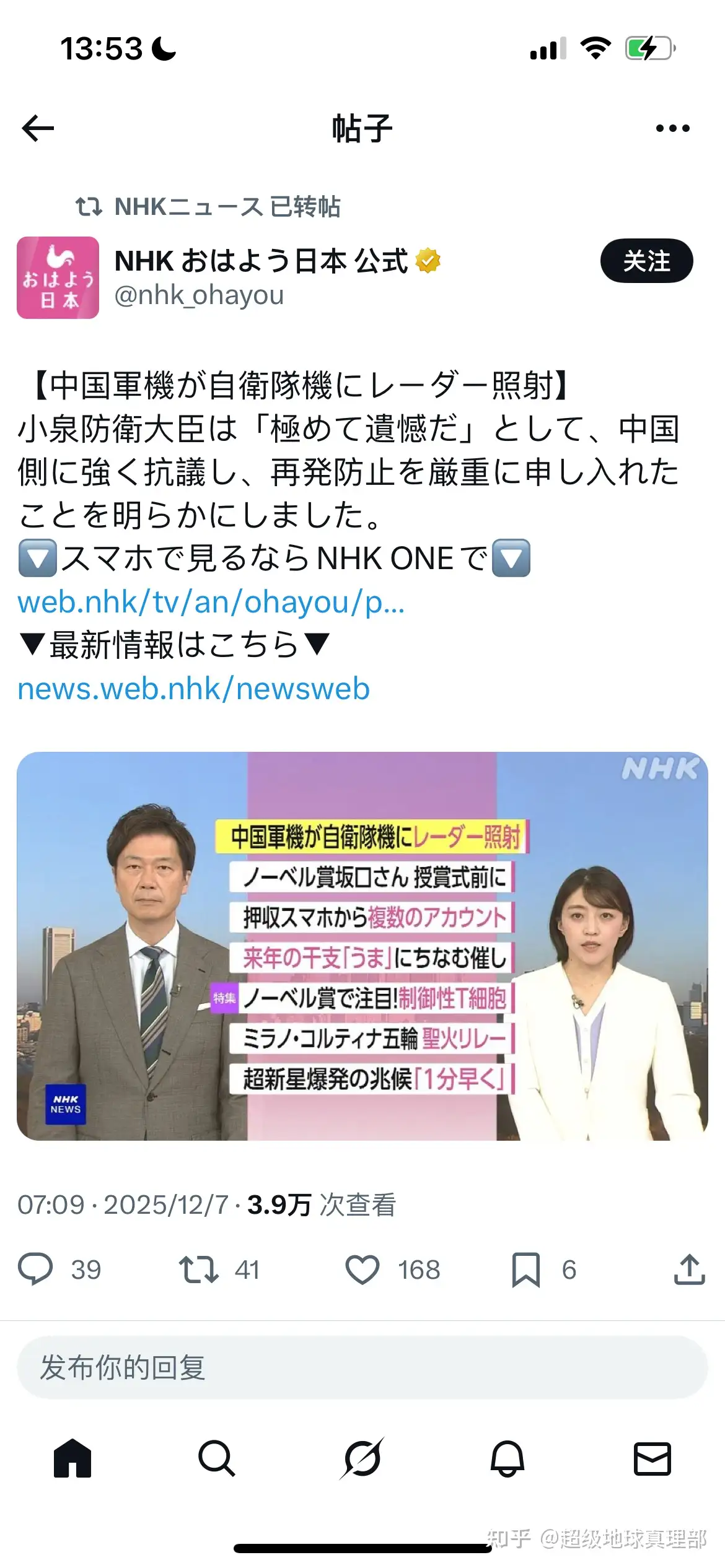 防卫省凌晨两点紧急开新闻发布会,小小泉大半夜爬起来向⏰抗议。今天早上JP所有的新闻(NHK,朝日,共同,产经,读卖……)头条全是这个,热度比当初旅行禁令和水产禁令还高。电视台还贴心地给小蜗们科普了一下什么叫"被雷达照射":相当于被人用上了膛的武器指着脑袋