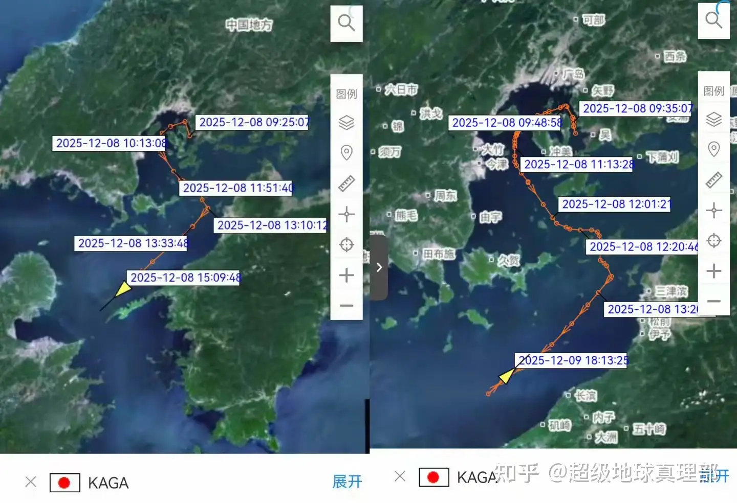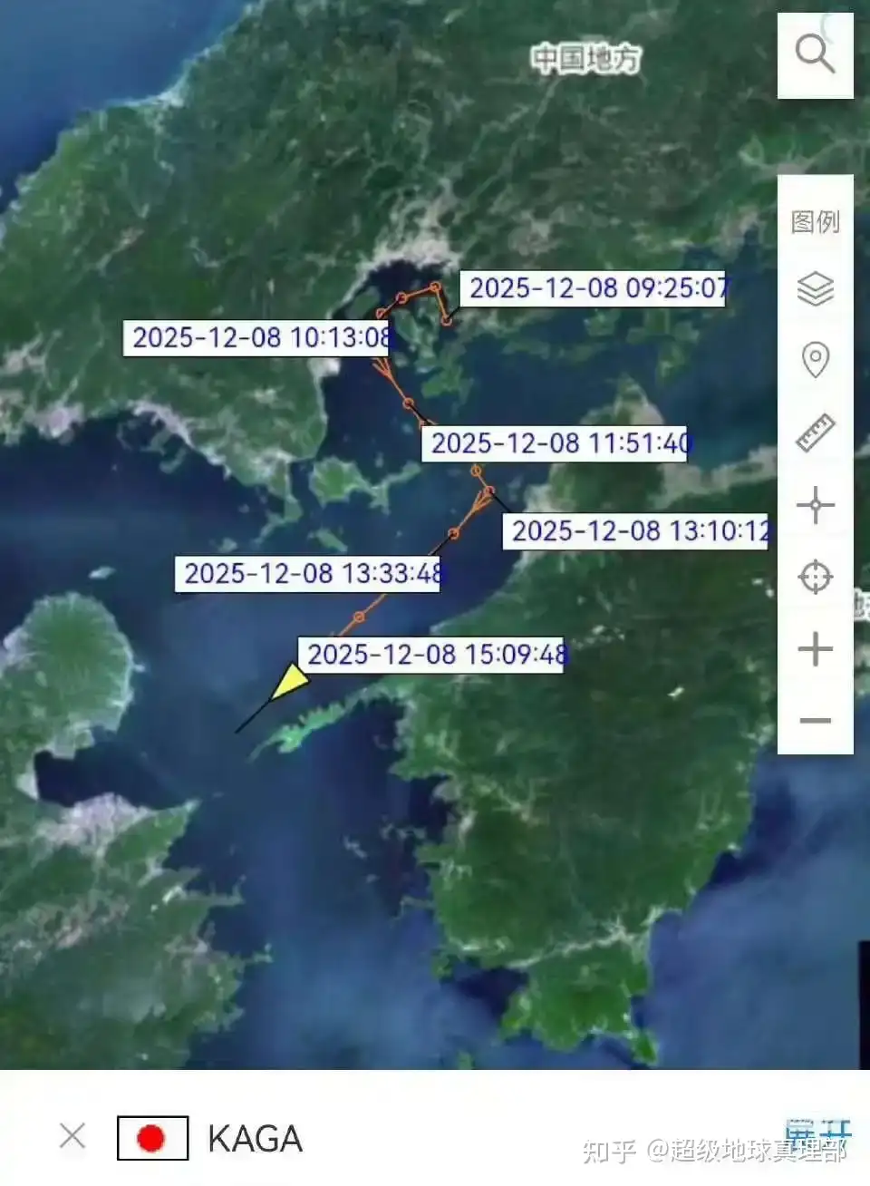 AIS信号显示,KAGA已离开东京湾,应该是想试图尾随辽宁舰打击群