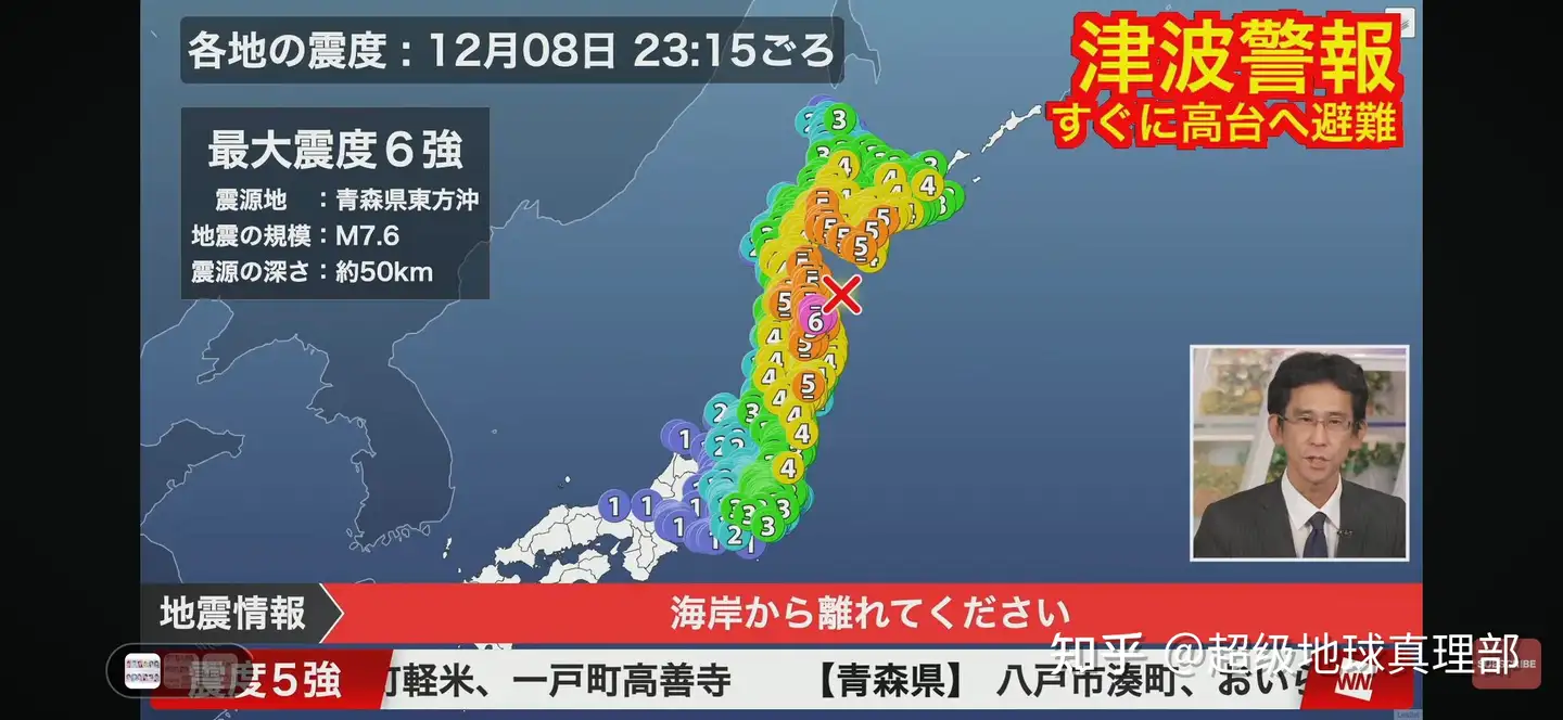 当地时间12月8日23时15分左右,日本青森近海强震,东京等地亦有明显震感。日本气象厅8日23时23分发布海啸警报,预计部分海域将出现最高3米海啸,呼吁沿岸民众高度警戒。