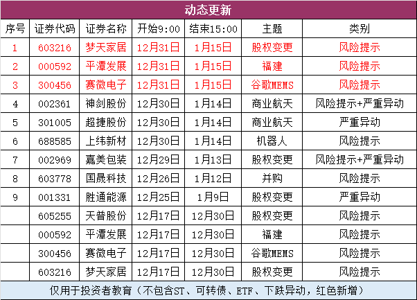 1板:天创时尚,控股股东将变更为安徽先睿(12.29)