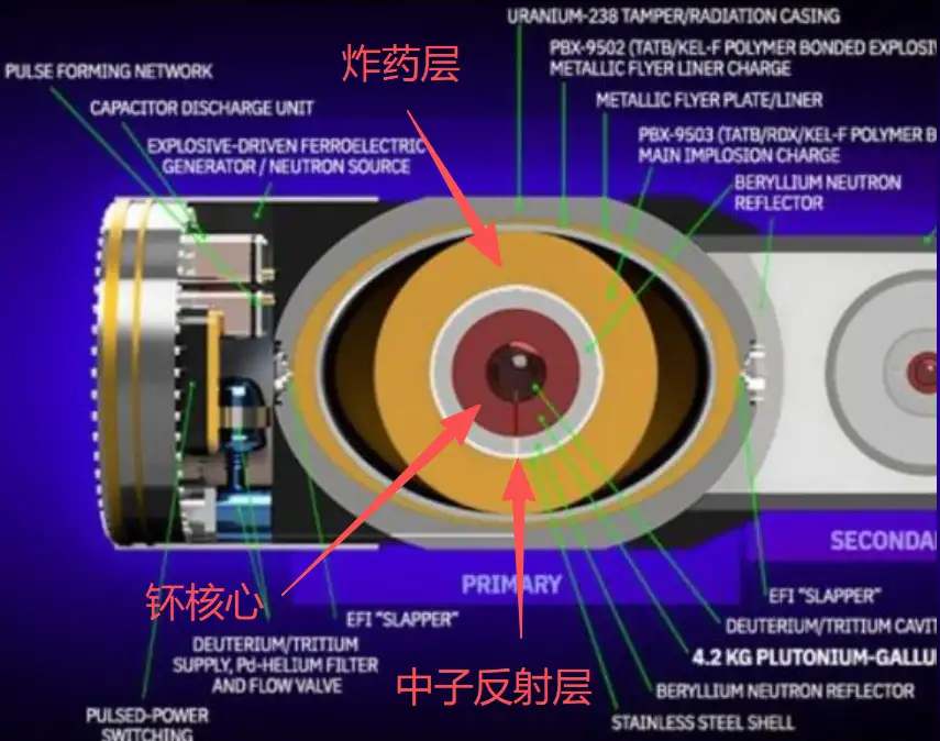 能够设计制造热核武器的初级装置,说明对化学装药爆轰的原理掌握到了炉火纯青的程度,能够精准而均匀的触发化学装药爆炸,精准掌控爆轰波传播与聚焦,才能在极其有限的体积之内形成形状准确的“爆轰波透镜”,把钚核心压缩到临界体积之下,而不是炸得满天都是。