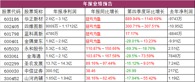 1板:长缆科技,年报同比增74%-114%,第四季度环比增2960%-3911%(1.14)