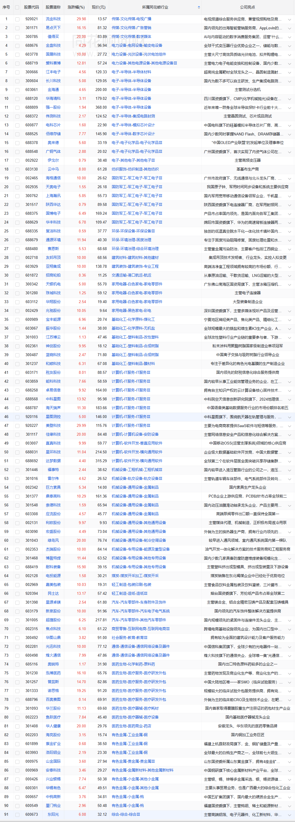 1板:云鼎科技、安妮股份、七彩化学、通 达 海、浙文互联、汉朔科技、华胜天成、三维天地、实达集团、友车科技、流金科技、映 翰 通、南方路机、捷顺科技、粤 传 媒、力鼎光电、天 下 秀、浩瀚深度、大 胜 达、金桥信息