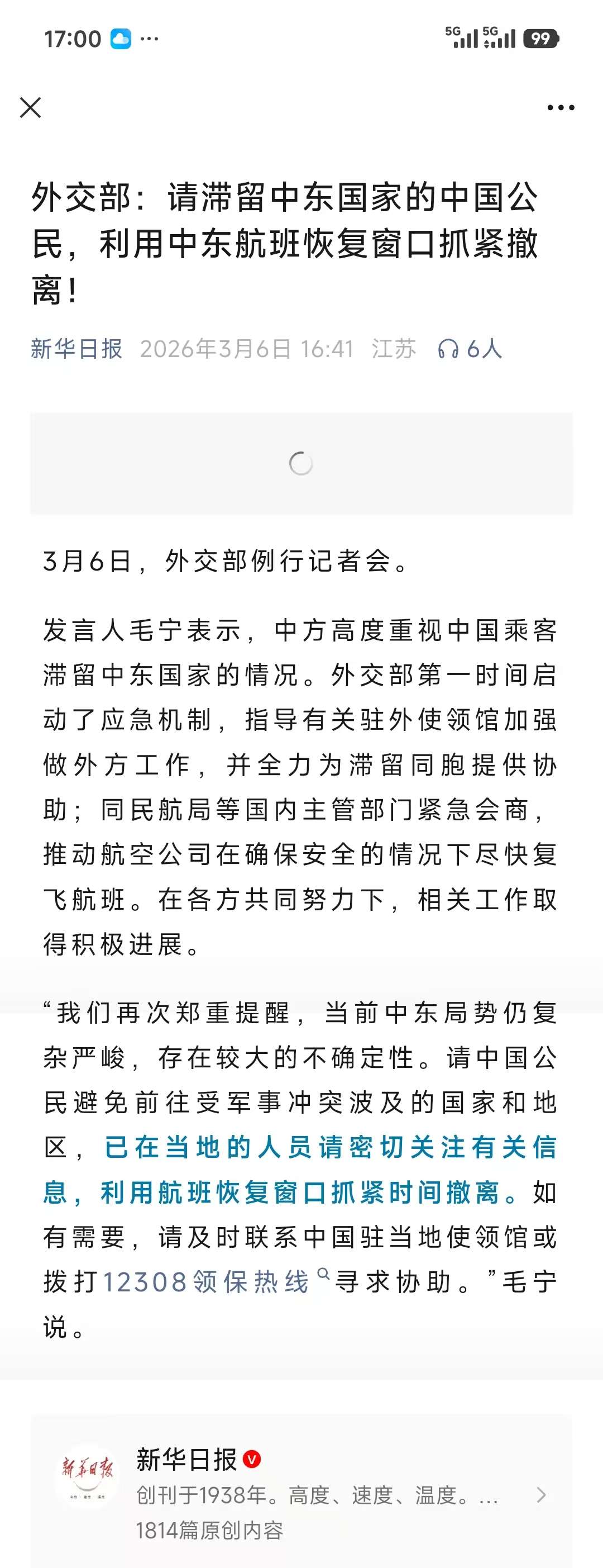 外交部已经明确表示当前以色列开放领空属于是“航班恢复窗口”,窗口,打开马上就要关上的,要“抓紧时间撤离”,机不可失时不再来的意思。这个意思已经非常明确了,中东地区国家包括以色列和其它沙特、阿联酋等国恢复航班只是暂时的,窗口期不会太长,冲突会持续。