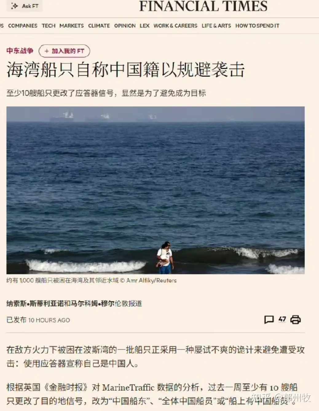 然后就是最经典的“becoming Chinese”时刻。《经济学人》杂志发文称,被伊朗火力困在霍尔木兹海峡的各国商船,正在采用一种屡试不爽的轨迹来避免遭受攻击:使用应答器宣称自己是中国人。