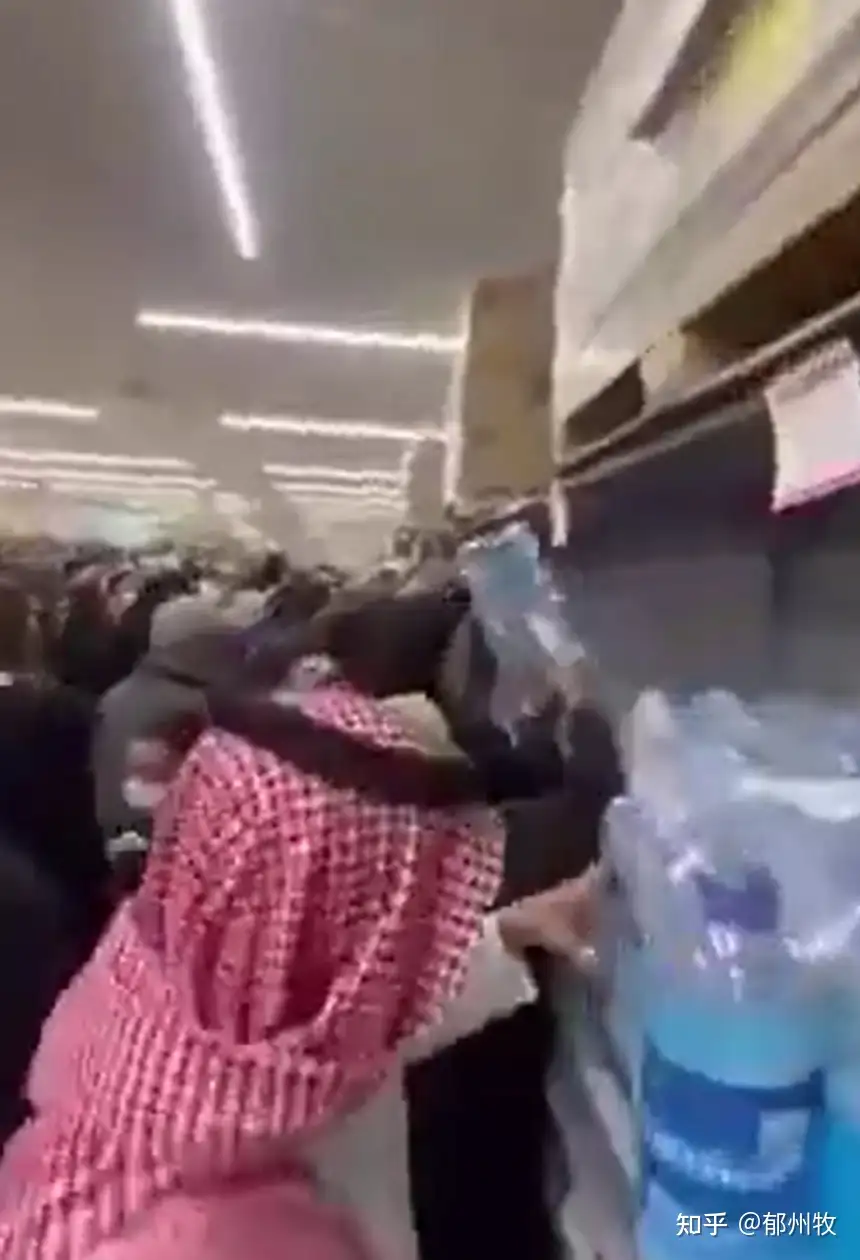 于是,阿联酋、巴林、卡塔尔这几个国家的老百姓冲进超市抢物资,抢水。