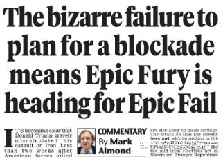 《每日邮报》曾是热情欢迎特朗普打击伊朗并强烈敦促斯塔默加入行动的报纸之一。而今天,该报首席分析师阿尔蒙德发表了一篇题为“准备不足导致‘史诗愤怒’行动走向彻底失败”的文章。