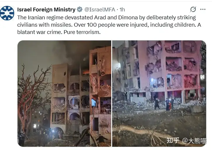 这下以色列终于绷不住了,愤怒的发推谴责“伊朗对以色列无辜平民的袭击和对儿童的伤害”(太幽默了,原来你也知道伤害儿童不对啊)