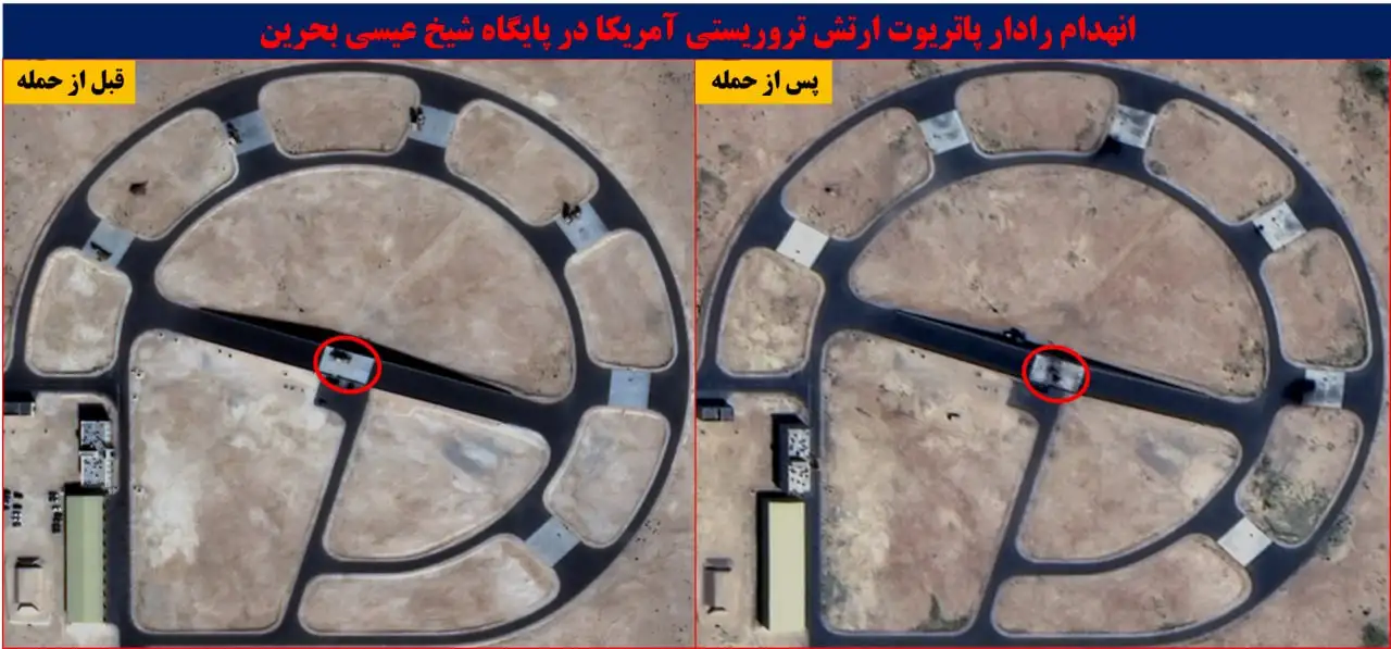 卫星图像显示,巴林一座位于北纬26°16’36.85“、东经50°37’53.05”的雷达罩,据称内藏有AN/TPS-75战术防空雷达,但在革命卫队的打击后被彻底摧毁。