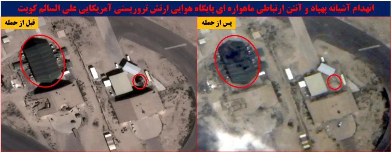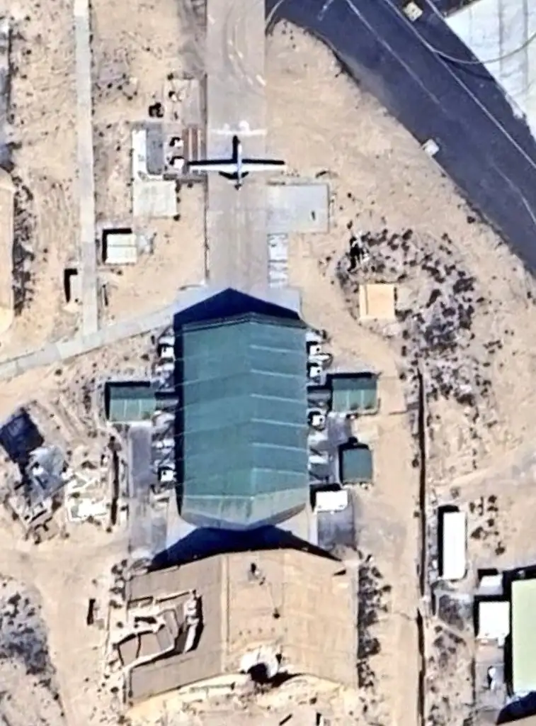 科威特阿里·阿尔萨利姆空军基地(29°20’12.01“N 47°32’00.38”E)的一个无人机掩体连同里面停放着的一架MQ-9死神无人机,最近在伊朗空袭中被击中。 附近的一根碟形天线(29°20’11.13“N 47°32’03.78”E)也被击中,该天线很可能与无人机GCS相连的卫星通信。