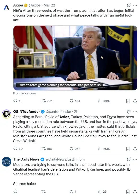 Axios昨天率先爆料称特朗普政府已开始与伊朗的展开初步和平谈判讨论。