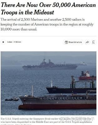 《纽约时报》报道,驻中东美军人数已超过 5 万人。