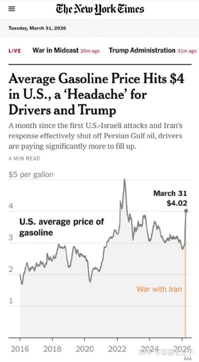 美国汽油价格自2022年以来首次突破每加仑4美元的平均水平。