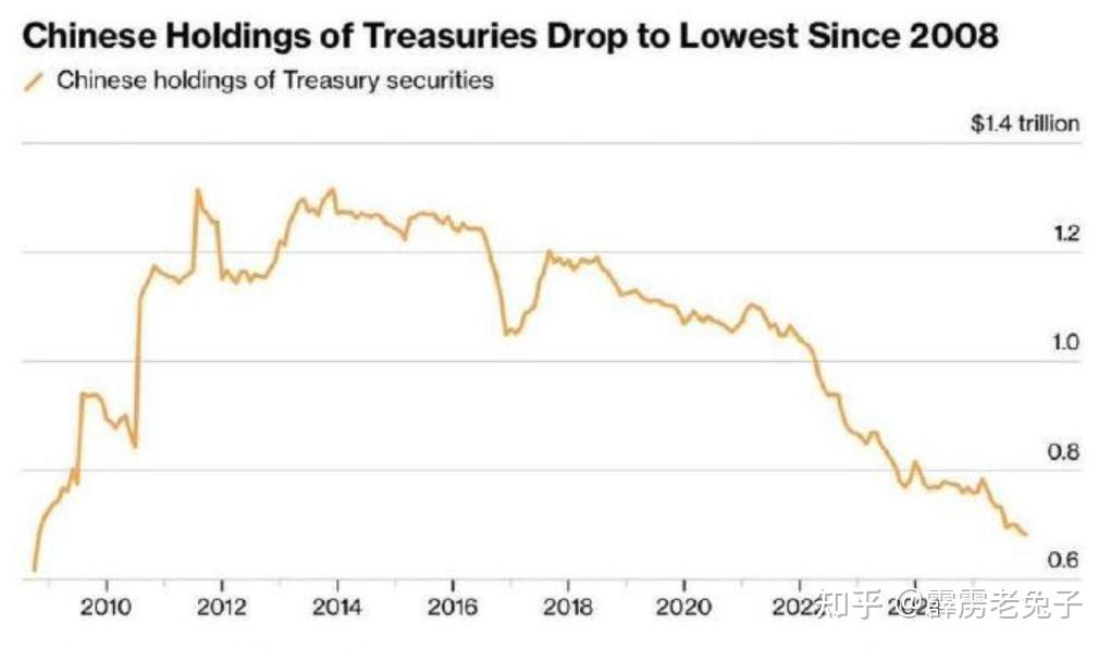 彭博社:中国持有的美国国债已降至2008年金融危机以来的最低水平,从2011年约1.3万亿美元的峰值减持至如今的约6500亿美元。