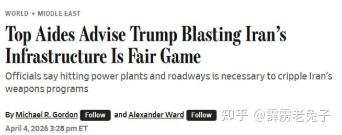 《华尔街日报》:特朗普的助手们说服他,伊朗的基础设施是合法的攻击目标。他们认为,摧毁发电厂和桥梁可以瘫痪伊朗,这引起了律师和人权组织的强烈不满。