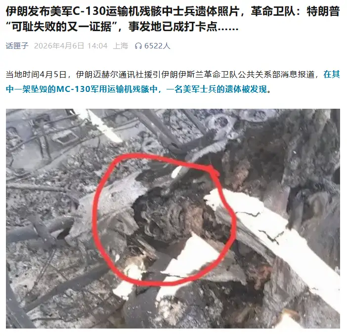 如果真的是美国自己发射导弹摧毁了MC-130J,里面无论如何也不可能有尸体吧?谁会傻缺到明知道自己人要摧毁自己的飞机还待在飞机里的?哪怕是已经死了,尸首得拖出来吧?