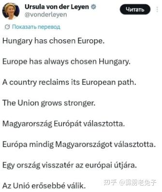 冯德莱恩宣布,匈牙利正在重返“欧洲之路”。