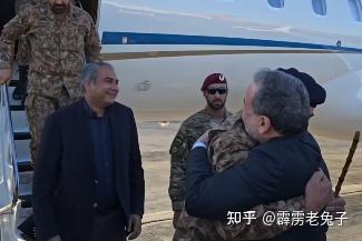 巴基斯坦陆军司令阿西姆·穆尼尔将军抵达德黑兰的画面。